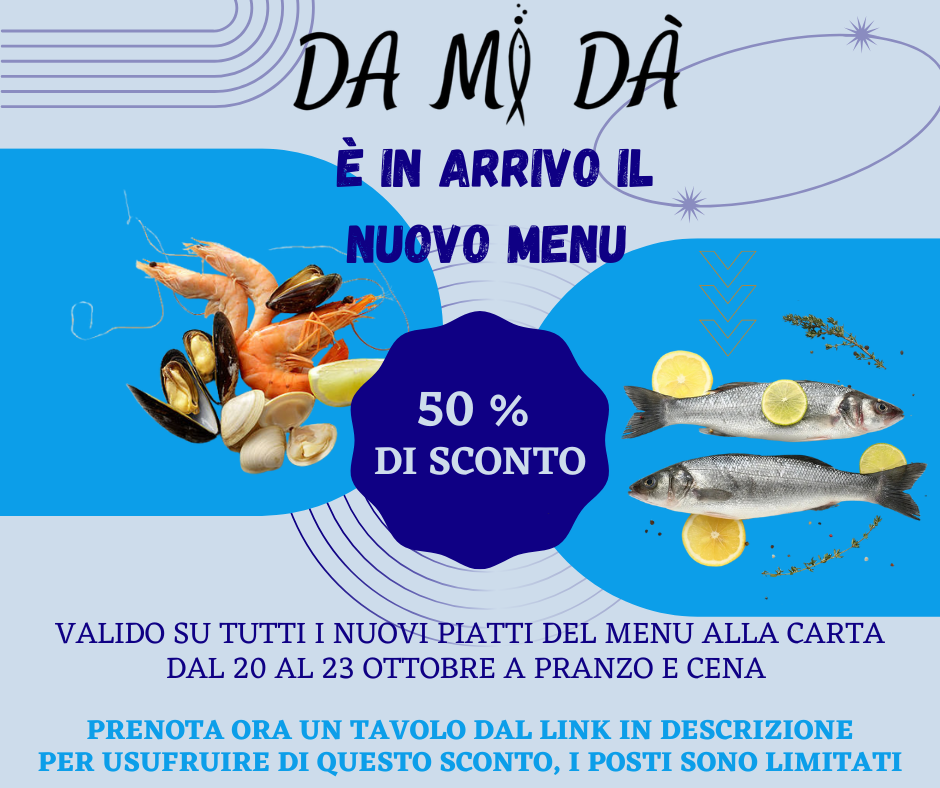 Quindi se verrai a trovarci a pranzo o a cena nelle giornate del 20 - 21 - 22 - 23 ottobre oltre a poter provare in esclusiva i nostri nuovi piatti, li pagherai la metà!